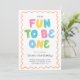 Convite de festa de primeiro aniversário fofo, tipografia divertida para ter um.