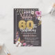 Cartão de Convite para Aniversário de Madeira Rústica com Algodão Rosa Esbranquiçado Floral, Números Dourados De Literatura E Luzes De Cordas