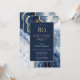 Convite de Aniversário para 80 de Agate Dourado Azul. Celebre uma festa de aniversário na moda com esta elegante design moderna. Apresentando tons azuis e dourados incríveis, padrões de geode de mármore e detalhes de tinta a álcool de aquarela, ele oferece um toque sofisticado para uma celebração de marco adulto. O traçado elegante e a estética refinada destacam perfeitamente 80 anos de memórias queridas, criando um convite luxuoso para uma celebração inesquecível.