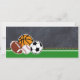 Celebre sua Festa de aniversário com nosso convite de aniversário desportivo Chalkboard All star. Design apresenta a ilustração de futebol, basquete, futebol americano, beisebol, rugby com "é hora de jogar, juntar-se a nós para comemorar" em texto de estilo divertido no fundo do quadro negro e um estilo de passagem de entrada de um estádio desportivo.