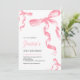 Convite de aniversário com arco de coquete rosa-d'água.