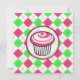 Um convite de aniversário com um plano de fundo rosa quente e um estilo de verde limão com um formato rosa quente.O lado oposto apresenta um quadro em forma de círculo cor-de-rosa com dentro de cupcake correspondente. Personalize o texto com detalhes da sua ocasião.