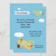Mosca sobre perto a comemorar! Convide os amigos da sua criança a sua festa de aniversário seguinte com este convite de festas customizável do avião. Caracteriza um céu azul e dois aviões coloridos com o um que puxa uma bandeira com a frase "é um partido" personaliza o convite de aniversário desta criança do avião facilmente, apenas muda os detalhes do partido e você é feito! Design de Sanqunetti