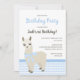 Convite de aniversário do azul da alpaca/lama