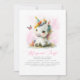 Experimente a magia com este design de convite de aniversário encantador, perfeito para a celebração de uma menina mágica. No coração da design está um unicórnio bebê, ilustrado em um estilo de livro de história caprichosa que irradia inocência e o encantamento. O unicórnio, com sua mana macia e colorida do arco-íris e espumante, olhos largos, cativa ao olhar maravilhoso para uma pequena borboleta fluindo. Esta interação torna-se a peça central da design, que é limpa e simples, mas incrivelmente bonita. A composição gentil e lúdica faz dela uma escolha ideal para um primeiro, segundo ou terceiro convite de aniversário, dando o tom para um dia cheio de maravilha, alegria e magia gentil desde o início.