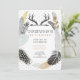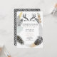 A Festa de aniversário tribal Boho convida adornada com penas, flechas e veados pretos, cinzas e penas neutras. Tenha uma festa de aniversário de vovó com este convite