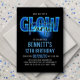 Acenda as luzes na festa perfeita para ele com este design de festas néon. Apresentando números negros e scripts oscilando com a luz, este convite é tão legal quanto chamativo. O brilho azul elétrico dá ao design uma vibração urbana suja que é perfeita para o seu filho ou adolescente. Veja a coleção hoje para coordenar peças para conectar a uma festa excitante que ele nunca esquecerá!