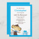 O convite para o aniversário de um macaco Safari Cute comece a comemorar o aniversário do seu macaco com o nosso adorável convite de aniversário de safari. Nosso convite para macacos-safari azul mostra o macaquinho mais bonito vestindo uma gravata de arco azul com uma caixa-presente. Perfeito para um primeiro aniversário ou qualquer aniversário! Totalmente personalizável por você com suas informações. ©Mujka Design