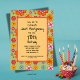 Revise os gloriosos dias da década de 1960 com este convite de aniversário hippie colorido de poder floral. Os óculos escuros do Peace Sign oferecem dois modelos redondos de fotos em meio a flores coloridas "mod" nas cores populares da década de 1970. Não precisa ser um aniversário de um marco ou mesmo para um celebrante da geração baby boomer. Torne-o seu próprio com o software de terceiros coordenado e troque desta coleção exclusiva.