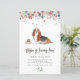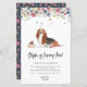 Woof! Convide a família e os amigos com este convite de aniversário de cão personalizável. Apresenta uma garland floral de aquarela, um lindo monge basset e um padrão floral correspondente para o verso do convite. Este convite para cães do Basset Hound é perfeito para festas de aniversário de crianças e festas de aniversário de cães. Os textos são perfeitamente editáveis para qualquer ocasião. Personalize adicionando seus próprios detalhes de evento.