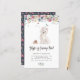 Woof! Convide a família e os amigos com este convite de aniversário de cão personalizável. Apresenta uma garland floral de aquarela, um doce Terrier branco de West Highland e um padrão floral correspondente para o verso do convite. Este convite para cães Westie é perfeito para festas de aniversário de crianças e festas de aniversário de cães. Os textos são perfeitamente editáveis para qualquer ocasião. Personalize adicionando seus próprios detalhes de evento.