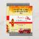 Convite de aniversário de bombeiros personalizado, este bombeiro e este convite de bombeiros em vermelho, amarelo e aço.