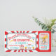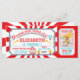 Vamos, vamos todos! Convide todos para a maior festa de aniversário sob o topo grande com nosso convite para ingressos de circo vermelho e teal personalizado com os modelos de fotos do seu próprio filho. Este convite de aniversário para ingressos de circo apresenta fundo vermelho de tenda de circo com carrossel vermelho e teal e balões de ar quente no estilo moderno admite um design de ingresso personalizado com sua própria foto.