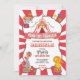 Convite de aniversário para o Carnaval Vermelho e Branco com detalhes coloridos do que você vê em um carnaval.