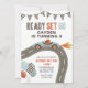 Convite de aniversário do Race Car com carro de corrida azul. Prepare-se!