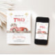 Eleve a sua próxima celebração de aniversário com o nosso cartão de aniversário "DOIS FAST". Apresentando um encantador carro retrô vermelho com uma bandeira à direita e uma fonte vermelha divertida "Duas Rápidas", este convite define o tom perfeito para uma celebração excitante e nostálgica. Personalizável com seus detalhes de eventos, promete tornar seu dia especial ainda mais memorável.