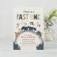 Seu filho de um ano é rápido! Convide amigos e familiares para uma festa de primeiro aniversario divertida com este carros vintage divertidos e animais ilustrando o convite temático.