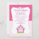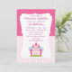 Este convite de festa de aniversário de princesa fofa apresenta um castelo de fada princesa rosa em um fundo listrado e com bolinhas rosa. Totalmente personalizável.