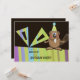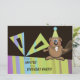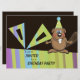 Este design apresenta um castor bonito vestindo um chapéu de festa. Este cartão é perfeito para um convite de aniversário.