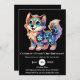 Um filhote de lobo brilhante com padrões azuis girando e marcas florais, cheio de maravilha cósmica e charme.