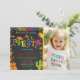 Cartão de Convite de Aniversário de Chalkboard com estilo Fiesta, Cactus & Tacos.