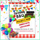 Este convite para o CHURRASCO do quintal exige atenção com seu design vermelho e branco ousado. A atmosfera festiva é ainda melhorada com balões coloridos, um grelhador de CHURRASCO, e comida de água boca.