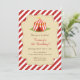 Convite de aniversário com design de tenda de circo e combinação de cor vermelha.