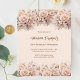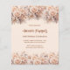 Um convite moderno, na moda e glamouroso para uma festa de aniversário. Um fundo de cor rosa, leve e leve, colorido, decorado com flores creme, cor de pêssego. Personalize e adicione os detalhes da sua festa. 1 folha = 1 convite impresso de borda a borda.