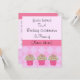 Na moda e convite de aniversário clássico em tons de rosa. Três cupcakes bolinhas na parte inferior. O design de diamante com uma borda rosa brilhante acentua esta carta elegante. Personalize com todas as suas informações conforme desejado.