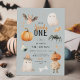 Celebre o seu primeiro aniversário com um toque de charme assustador! Este adorável convite de aniversário do tema "Ele é um Spooky One" apresenta uma série encantadora de personagens bonitinhos do Halloween, incluindo fantasmas amigáveis, um morcego fofo, abóboras e aranhas. As cores macio e as ilustrações brancas dão um tom festivo, mas gentil, perfeito para a primeira comemoração de aniversário.