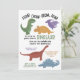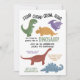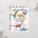 Festa como um dinossauro! Este belo convite de aniversário para dinossauros apresenta um T-rex, stegossauro, triceratops, pterodátilo e diplodocuments. É perfeito para a festa de aniversário de um menino ou de uma menina! © 2023 Tea Olive Co.