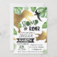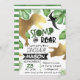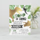 Dourado convite de aniversário do Dinossauro Verde Procurando um convite ousado para a festa de aniversário do seu filho? Este design apresenta duas silhuetas de dinossauro douradas, faixa verde-tropical em preto e verde-azul e cabeçalho traseiro. Esta é uma maneira legal de convidar os amigos e a família do seu filho para a festa de aniversário temática de dinossauros.