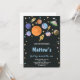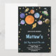 Faça o aniversário do seu filho fora deste mundo com este vibrante convite espacial! Com um foguete, planetas coloridos e um fundo de galáxia, este design editável é perfeito para jovens astronautas e fãs espaciais. Personalize seus detalhes de eventos facilmente usando as ferramentas de personalização do Zazzle. Excelente para rapazes ou raparigas que adoram estrelas, foguetes e aventuras espaciais!