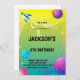 Inicie a comemoração do seu filho em órbita com este vibrante convite de aniversário do espaço exterior amarelo e verde! Com um foguete, planetas e estrelas em um fundo cósmico ousado, este design editável é perfeito para crianças que adoram aventuras espaciais. Personalize facilmente o nome, a idade e os detalhes da festa usando as ferramentas de design do Zazzle. Excelente para astronautas, foguetes ou festas de galáxias.