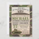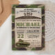 Chamando todas as tropas! Convide todos a participarem na sua festa de aniversário de operações especiais com modelos de convite do exército de camo. Os convites de aniversário do exército camo contêm verduras militares e castanhos coloridos de camuflagem com tropas e um tanque em um design de convite estilo moderno.