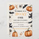 Adicione seu próprio texto a este convite de aniversário de Halloween assustadoramente fofo! Recursos fantasmas sorridentes, morcegos, abóboras e estrelas em um fundo em branco — perfeito para crianças e famílias que amam diversão e susto.