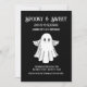 Um convite de aniversário assustador de Halloween com alguns fantasmas assustadores, mas também fofos.