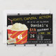 Um convite de festas printable da noite de cinema para um menino. O convite perfeito para um divertimento da noite de cinema ajustou-se no tema preto, do vermelho e do cinema, na pipoca e na soda