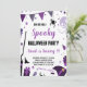 Jogue uma celebração na moda e assustadora com este convite de aniversário de Halloween roxo! Projetado para meninas que amam Halloween e todas as coisas bonitinhas e assustadoras, esta carta editável combina encanto com um toque de susto. Perfeito para aniversários de outubro, festas de fantasia ou uma festa de Halloween divertida!