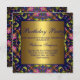 Convite de Aniversário para Jardim de Flor Azul e Dourado Elegante