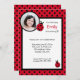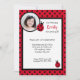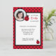 Convite bonito da foto do aniversário com um fundo preto e vermelho das bolinhas, e um par joaninhas pequenos. Inscreva a foto da sua criança no espaço fornecido.