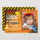 Local de escavação de construção com fundo sujo, chapéu de duro, cone e fita de construção. design da placa do Convite de aniversário. 4 anos.