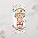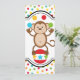 Um macaco carnavalesco malabarizando bolas em um fundo de bolinhas e áreas que você pode personalizar facilmente com as informações do seu filho sobre o evento de carnaval convida ele a amar!