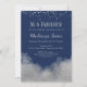 Um elegante convite de aniversário, azul e prata, com poeira prateada confetti no topo e prata no fundo.