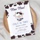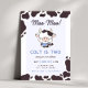 Prepare-se para celebrar o nosso Convite de Aniversário de Vaca! Mostrando uma vaca bebê em um fundo azul, esse convite é acentuado com bordas de vaca. O texto personalizável permite personalizar todos os detalhes da festa, fazer-o a escolha perfeita para o dia especial do seu pequeno.