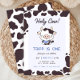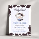 Prepare-se para celebrar o nosso Convite de Aniversário de Vaca! Mostrando uma vaca bebê em um fundo azul, esse convite é acentuado com bordas de vaca. O texto personalizável permite personalizar todos os detalhes da festa, fazer-o a escolha perfeita para o dia especial do seu pequeno.