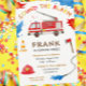Convite de aniversário do Motor de Fogo do Caminhã