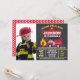 Este belo convite de aniversário de fotos do quadro-negro apresenta um caminhão ou motor de incêndio, algumas chamas, chapéu de bombeiro e hidrante de incêndio em um fundo de quadro-negro digitalizado. O mesmo convite de design de aniversário também está disponível na loja sem uma fotografia. Eu queria criar um novo convite para caminhoneiros porque é um tema de festa de aniversário de um rapaz muito amado. O motor de tiro fotográfico deste rapaz ou o convite de aniversário do caminhão está pronto para ser personalizado.