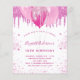 Para uma festa de aniversário feminina. Um fundo branco. Decorado com brilho sujo rosa e balões. Personalize e adicione um nome e detalhes da parte. O nome é escrito com um script de estilo manuscrito
