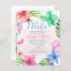 A praia oceânica moderna, aloha havaiana, estilo feminino, modelo barato convite de aniversário de orçamento feminino com flores coloridas de hibisco, com folhas tropicais, uma estrela-estrela, uma ave flamingo rosa sobre um fundo rosa-claro-rosado. +++++++++ O convite é adequado para o verão aloha, litoral, oceano, praia, destino sazonal pelas festas de aniversário marítimas. +++++++++ LEIA ISTO ANTES DE COMPRAR! Este é um cartão de casamento de barato orçamentário impresso em uma folha de papel (cada folha tem um cartão). +++ Para obter a melhor qualidade de preço, nosso conselho é escolher o tipo de papel Semi-Gloss (é espesso o suficiente para ser usado para papelaria) +++ Se você precisar de envelopes, escolha a OPÇÃO ENVELOPE. ++ Verifique duas vezes todas as informações e a ortografia do seu texto porque você receberá exatamente o que você vê - ninguém mais verificará nada antes de imprimir. +++ Esta placa foi projetada para o tamanho de 4,5" x 5,6". Caso você escolha outro tamanho do cartão e o texto saia da página, tudo precisa ser corrigido antes de adicionar o produto ao carrinho. Peça ajuda ao Serviço de Design ao Vivo.